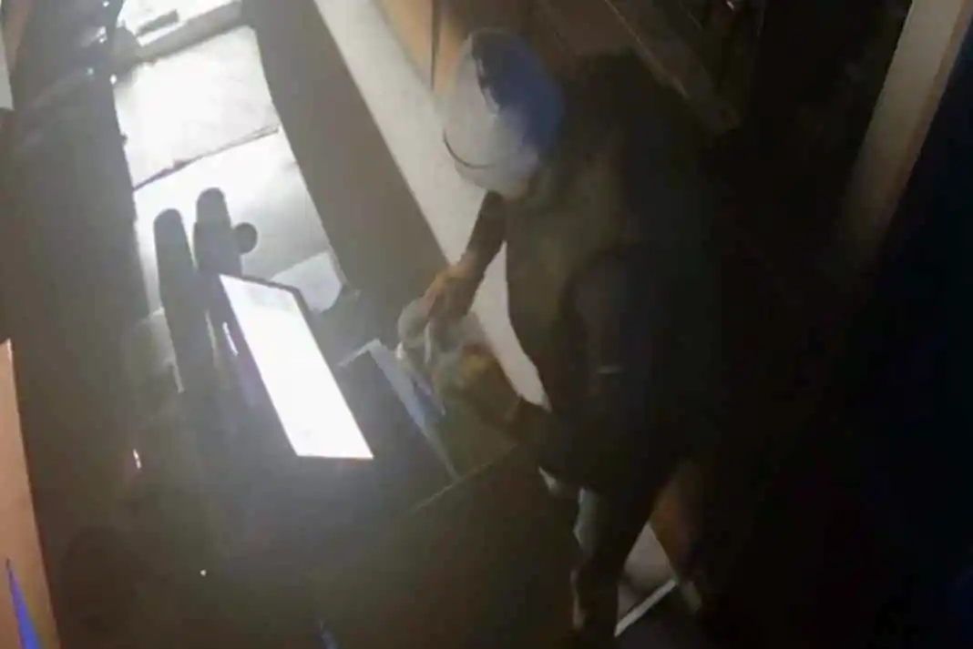 The suspected intruder is reported to have helped themselves to the till, cash and food from a fast-food shop after getting inside it by breaking a glass window with a rock.
