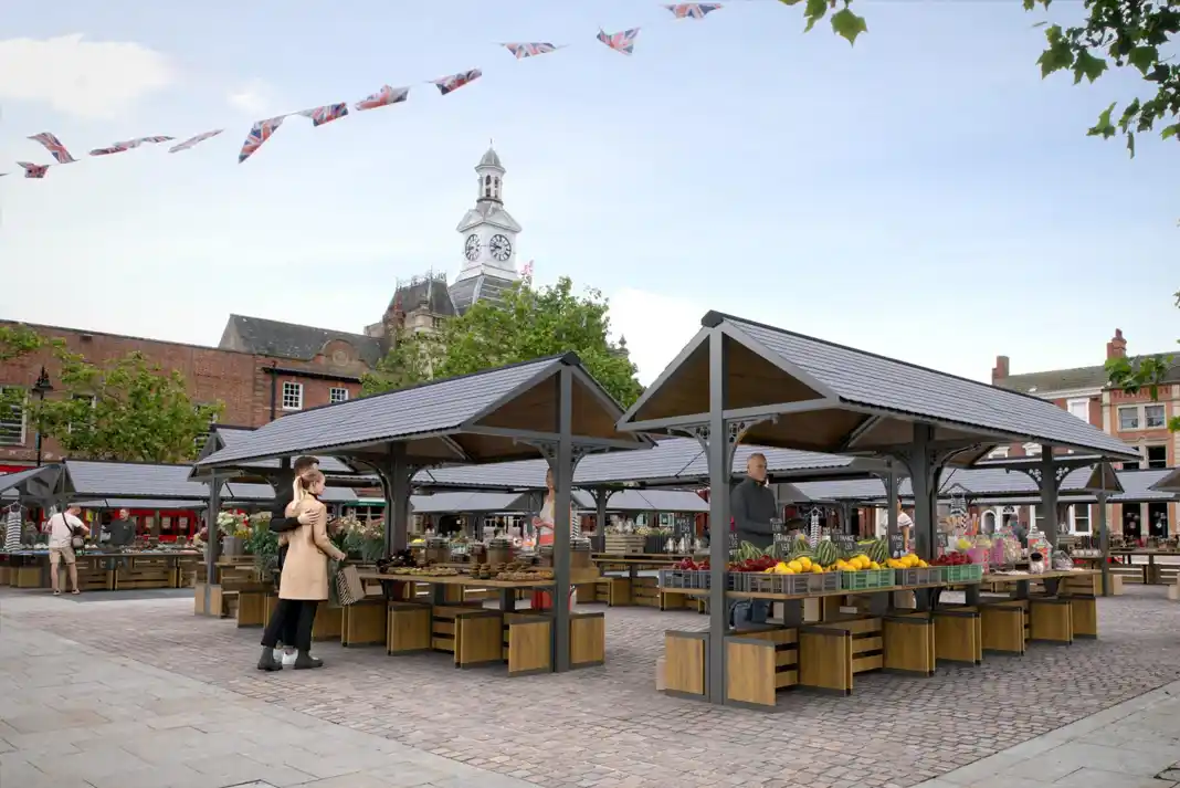 In Retford, the existing market stalls are getting a makeover by being shotblasted, repainted and extended to provide additional protection for traders and their goods, new white and green coverings are being introduced, while market stall boards will be upgraded.